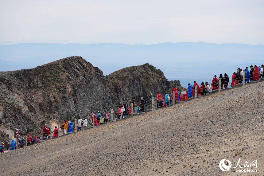 9月22日,游客在长白山天池主峰欣赏秋日美景。人民网记者 李洋摄