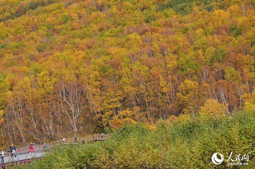 9月22日,游客在长白山景区赏秋景。人民网记者 李洋摄